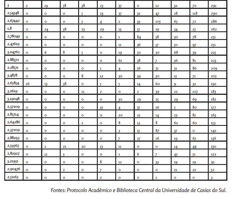 Fontes: Protocolo Acadêmico e Biblioteca Central da Universidade de Caxias do Sul.