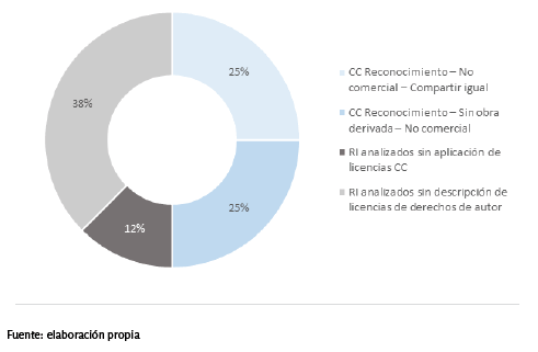 Figura 3. Aplicación de licencias CC en los RI venezolanos de AA