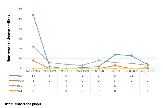 Figura 5. Registro histórico de las revistas científicas alojadas en los RI venezolanos en AA