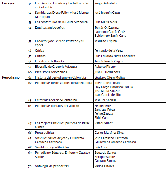 Keywords: Selección Samper Ortega de Literatura Colombiana; Colombian publishing; Colombian literature; Libraries; Literary series; Printers