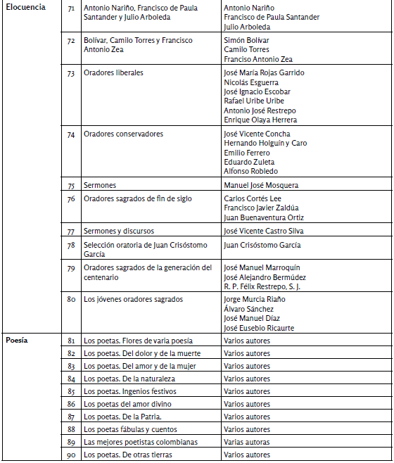 Palabras clave: Selección Samper Ortega de Literatura Colombiana; Edición colombiana; Literatura colombiana; Bibliotecas; Colecciones literarias; Imprentas