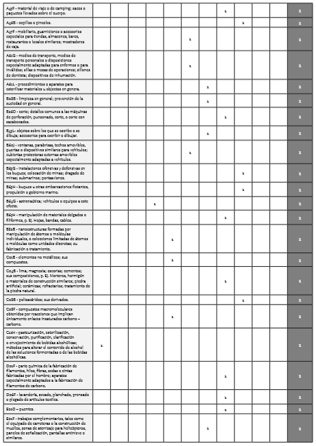 Clasificaciones: Reflejan las tecnologías a las que aplica la invención, ya que una invención puede aplicar a distintas industrias por transversalidad de la técnica.
