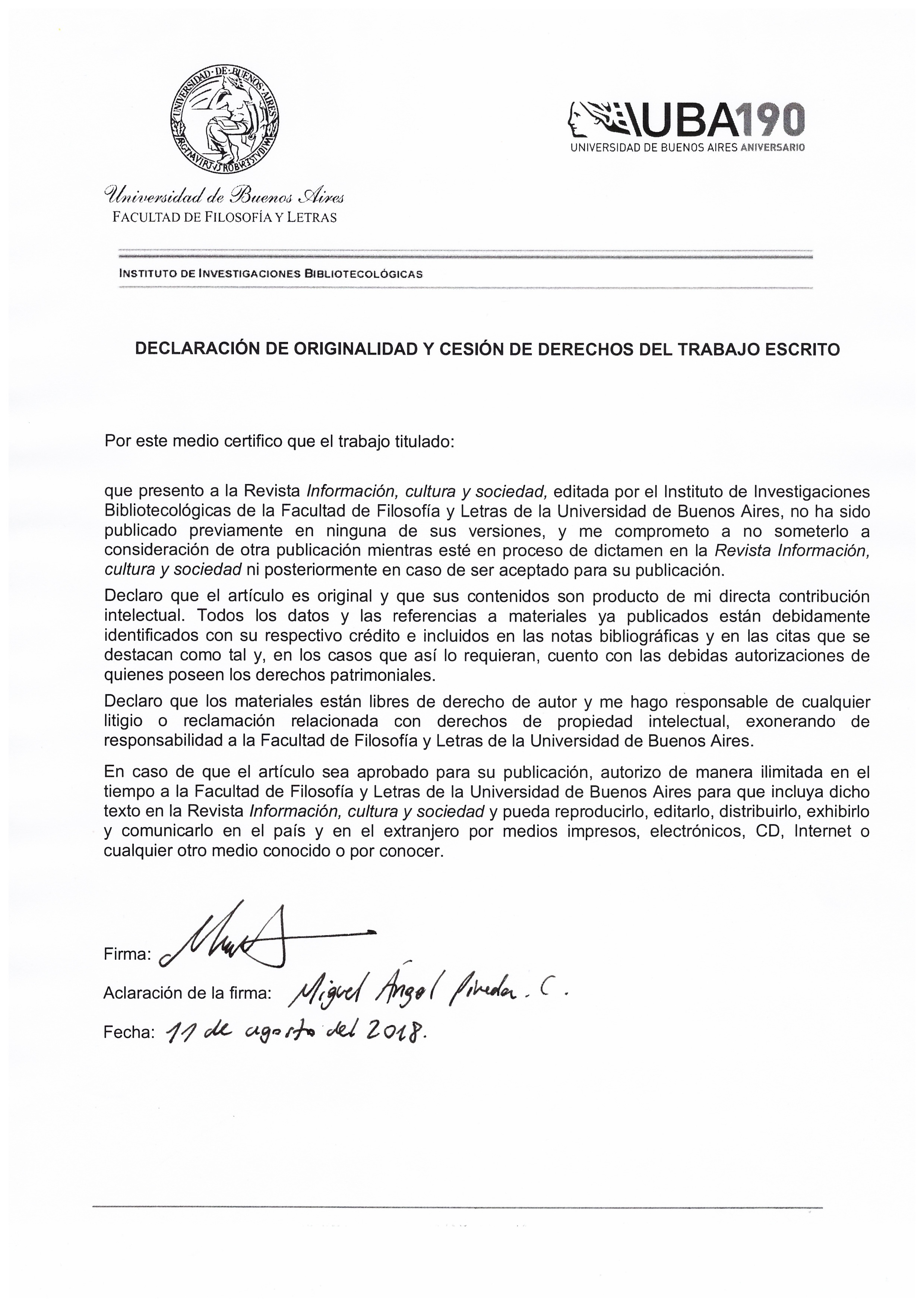 - Se permite y recomienda a los autores/as a publicar su trabajo en Internet (por ejemplo en páginas institucionales o personales).