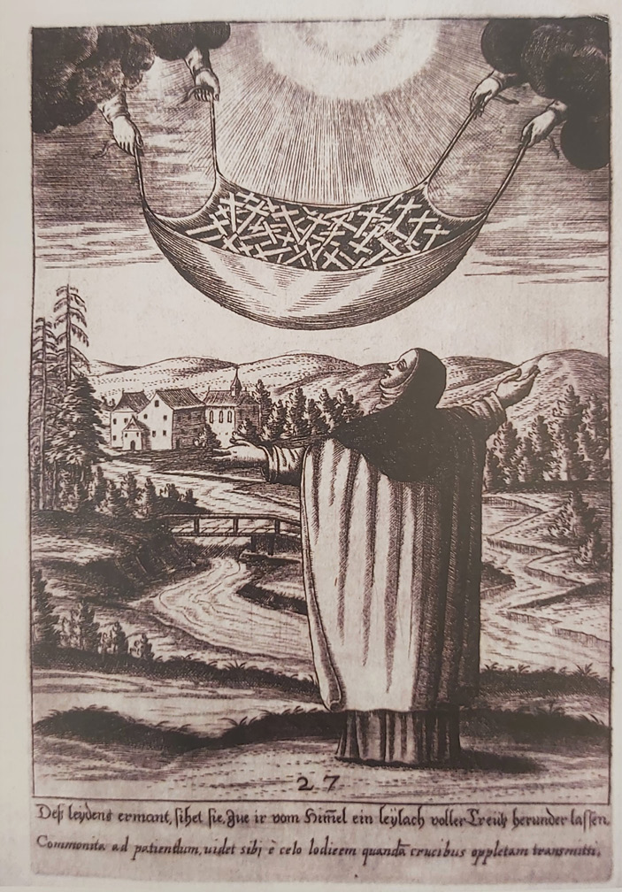 Figura 3. Anónimo. Estampa. Escena 27 del Ciclo de la Vida de Ana de San Bartolomé. ¿Colonia, post quem 1637? Carmelitas de Munich. [Fotografía: Ruiz y Urkiza, 2016, p. 97].