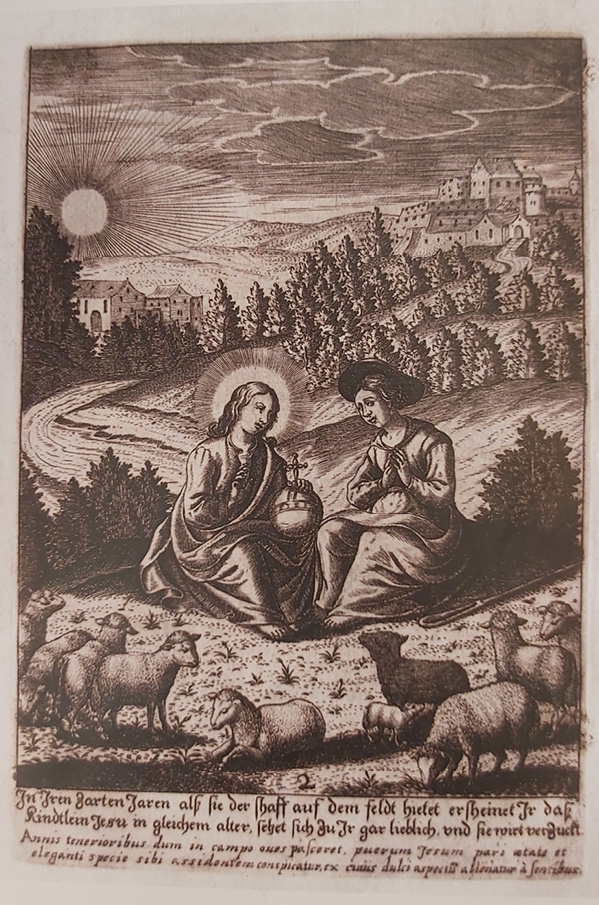 Figura 5. Anónimo. Estampa. Escena 2 del Ciclo de la Vida de Ana de San Bartolomé. ¿Colonia, post quem 1637? Carmelitas de Munich. [Fotografía: Ruiz y Urkiza, 2016, p. 47].