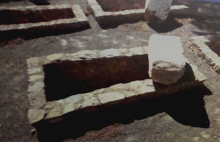 Imagen 1. Imagen de los hallazgos arqueológicos del cementerio judío de Sagunto (siglos XIII-XV), exhibida en el Museo Sefardí de Toledo. Fotografía de la autora.