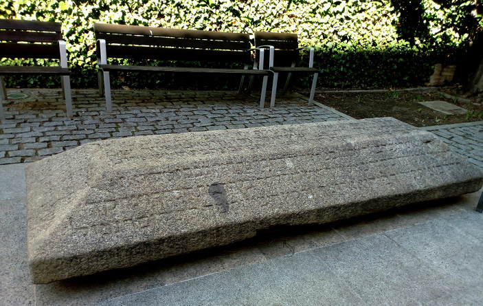 Imagen 2. Lápida exhibida en el Museo Sefardí de Toledo. Dimensiones: 2,73 m. x 0,92 m. x 0,34 m. Fotografía de la autora.
