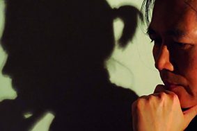 Descripción de imagen: de perfil el rostro de un hombre de facciones orientales con su mano en la barbilla. A su lado, se proyecta la sombra de su cara.