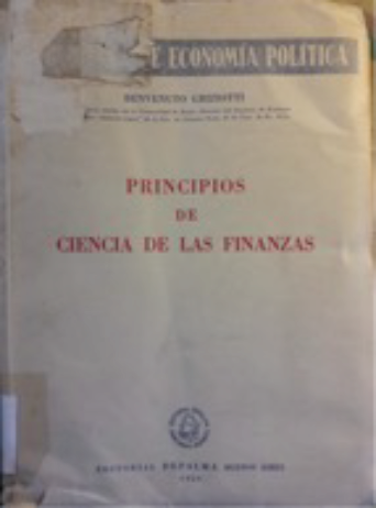 » Griziotti, Benvenuto. 1959. Principios de Ciencia de las Finanzas. Traducción por Dino Jarach, con un estudio introductivo del traductor sobre La teoría financiera de Benvenuto Griziotti y notas de referencia al sistema financiero argentino. Buenos Aires: Depalma. 419 págs.