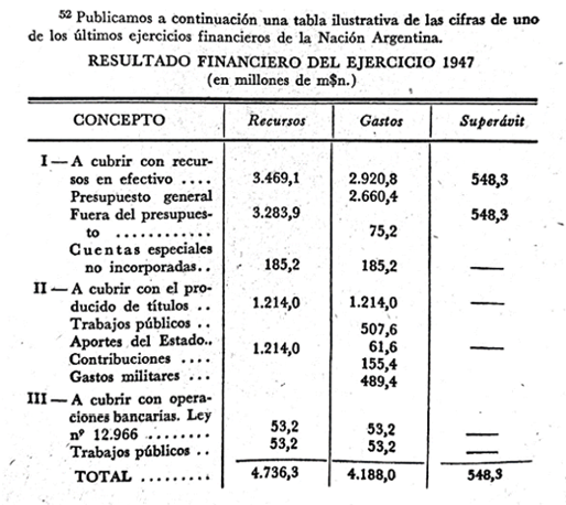 (14) 12 El valor total de los gastos públicos de la Nación Argentina evolucionó de la siguiente forma: En el año 1825 alcanzaron a $ 1.700.000; en 1855, $ 2.877.000; en 1865, $ 8.000.000, aprox.; en 1876, $ 20.000.000; en 1895, $ 76.000.000; en 1915, $ 393.000.000; en 1923, $ 665.000.000; en 1937, $ 983.000.000; en 1947, 3.385.000.000; en 1950, $ 11.000.000.000, aproximadamente (todos los datos corresponden a los presupuestos de los años respectivos). (PCF-1949, 66-67).